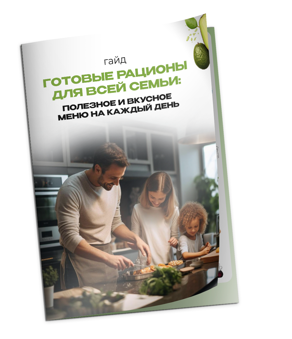 Заберите в подарок гайд «Готовые рационы для всей семьи», благодаря которому вам не придётся изо дня в день ломать голову над тем, что бы такого приготовить!💫